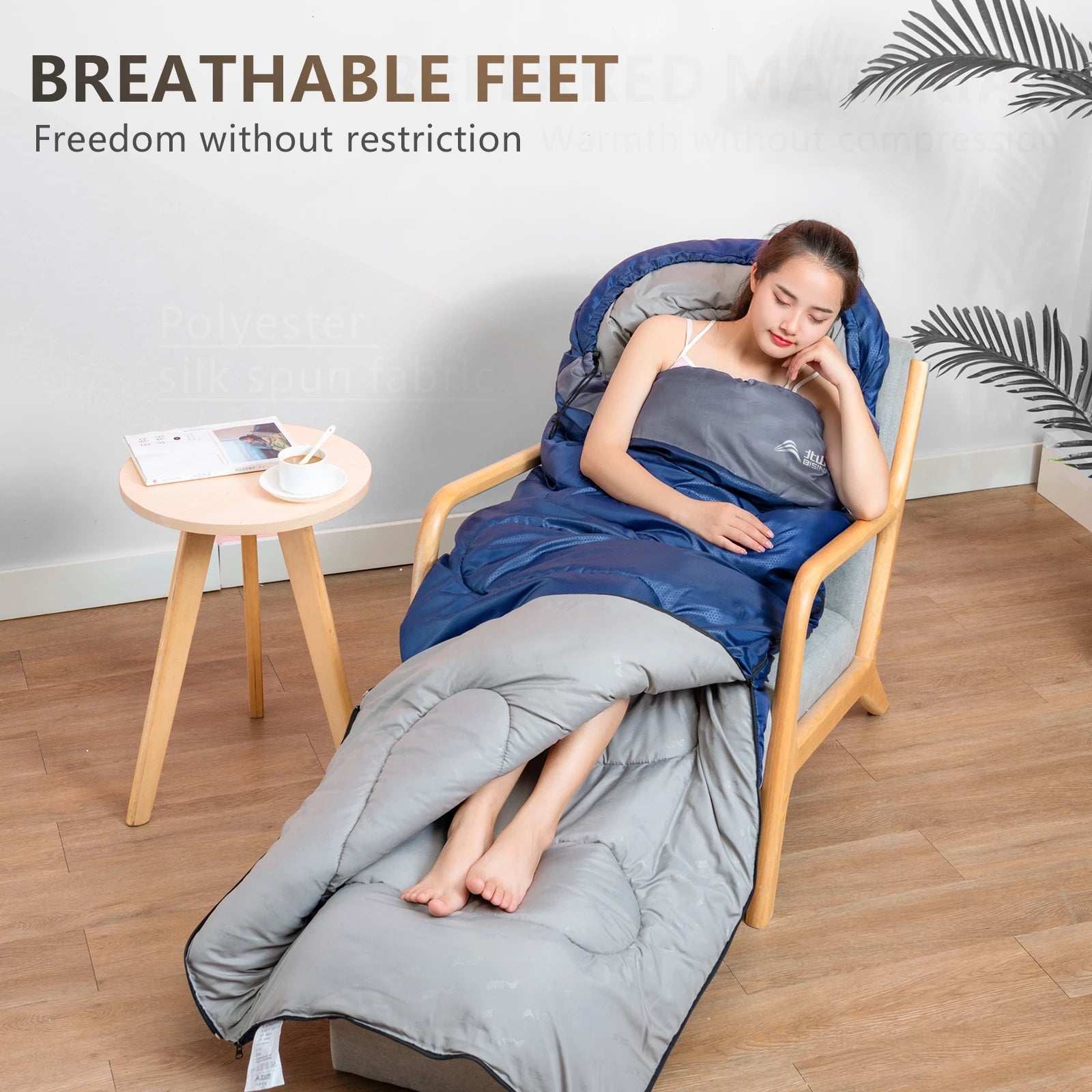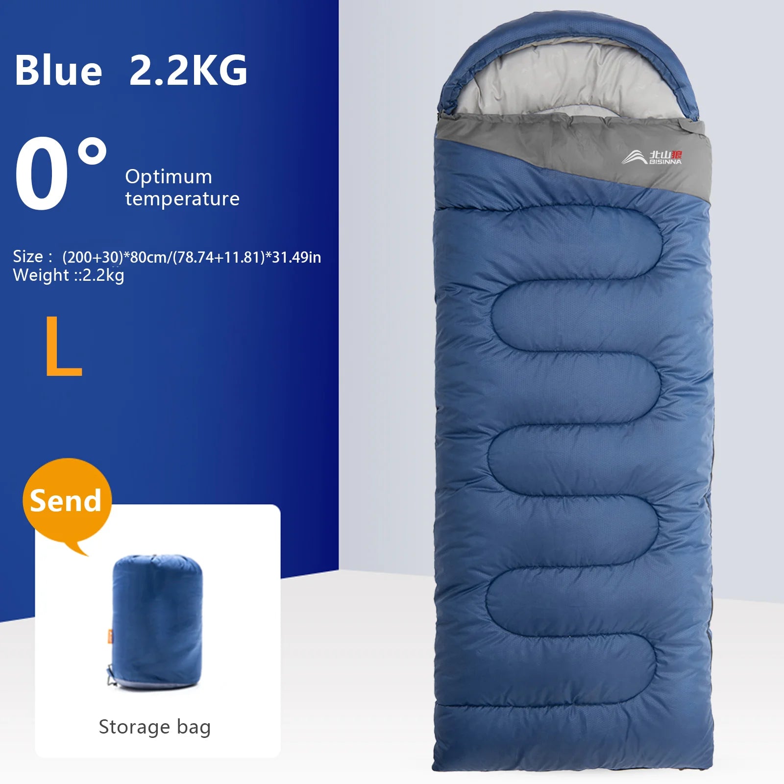1.Durability and waterproof: This sleeping bag is made of 190T anti-tear polyester and waterproof shell. It contains hollow cotton that can always keep warm inside the sleeping bag. Inner fabric is made of 190T polyester pongee, soft and skin-friendly polyester, suitable and breathable